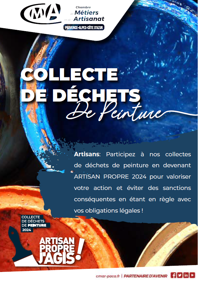 Dans le cadre de l'opération 'Collecte des déchets de peinture' organisée par la CAPEB 13 et la Chambre de Métiers et de l'Artisanat Régionale PACA : Nous vous attendons.