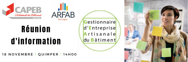 Pour en savoir plus, la CAPEB du Finistère et l'ARFAB Bretagne vous proposent d’échanger sur cette opportunité de formation lors d'une réunion organisée le :