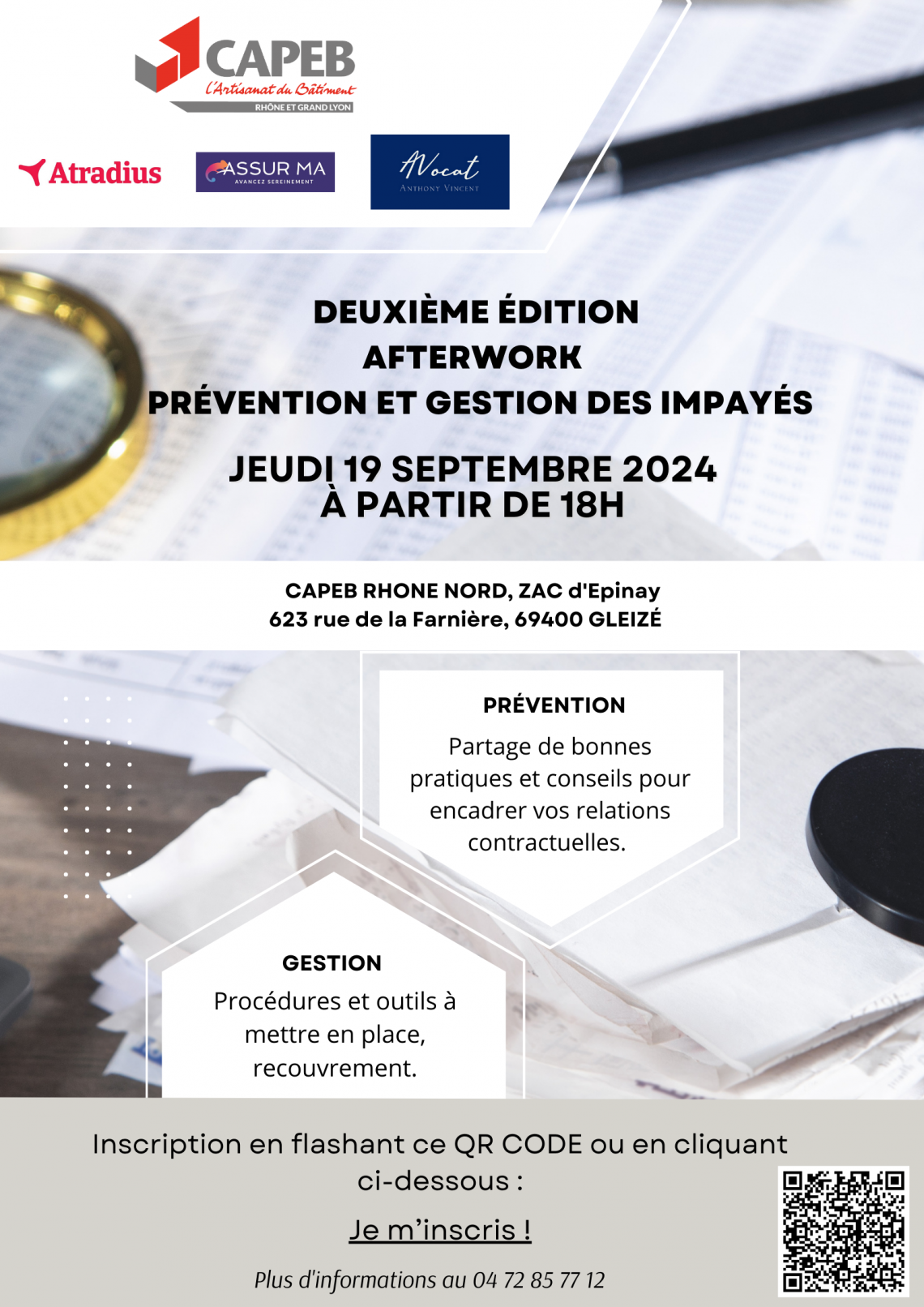 Deuxième édition de l'Afterwork : Prévention et Gestion des impayés Rendez-vous à la CAPEB RHONE NORD, ZAC d'Epinay, 623 rue de la Farnière, 69400 GLEIZÉ Je m'inscris !
