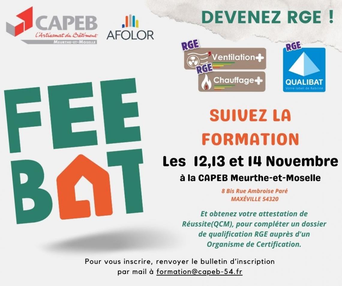Pour cela rien de plus simple, venez vous former à la CAPEB Meurthe-et-Moselle lors de notre prochaine formation FEEBAT avec Afolor Formations les 12, 13 & 14 Novembre !