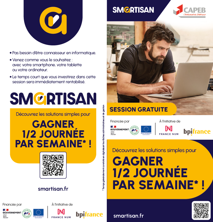 Nous vous proposons, en collaboration avec SMARTISAN cette formation gratuite d’une demi-journée. La promesse : faire gagner une demi-journée par semaine grâce au numérique.