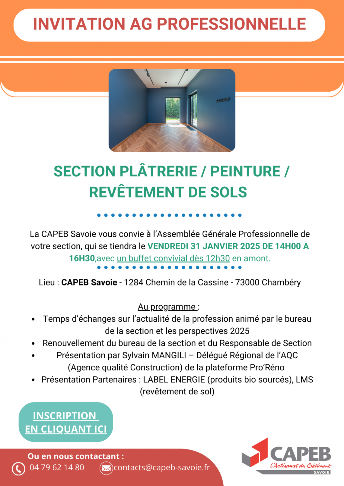 VENDREDI 31 JANVIER 2025 DE 14H00 A 16H30, à la CAPEB Savoie à Chambéry