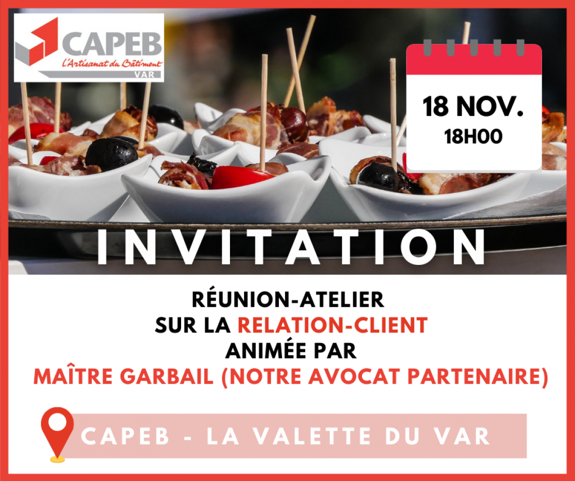 INVITATION Réunion-Atelier sur la Relation-Client animée par Maître GARBAIL (notre avocat partenaire)