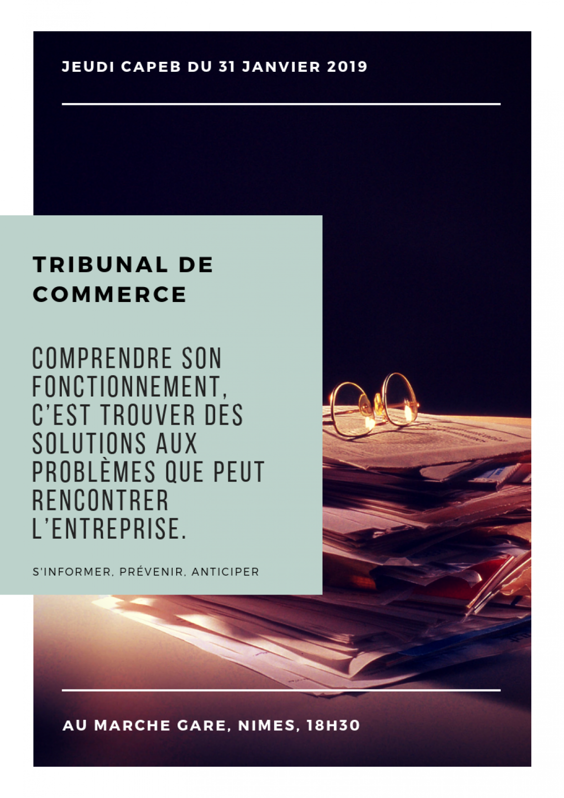 Ce JEUDI CAPEB, venez à la rencontre de M. ALBOUY, Président du Tribunal de Commerce et Maître ROUSSEL, Mandataire judiciaire. Auprès de nos intervenants privilégiers, Chefs d'Entreprise vous trouverez une information et une aide précieuse.