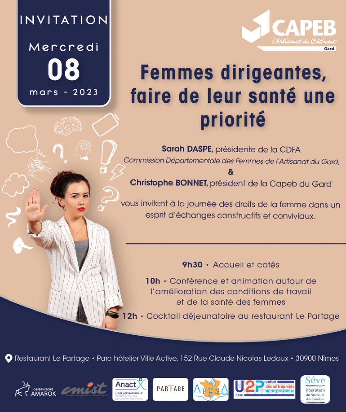 Venez nous faire part devos expériences, participer à nos pistes d’action et partager par la suite unmoment convivial autour d’un cocktail déjeunatoire.