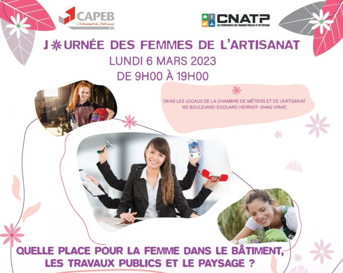 Dans le cadre de la journée internationale de la femme, la Commission des Femmes de l’Artisanat de la CAPEB de l’Ain, organise une journée spéciale à destination de toutes les cheffes d’entreprises, salariées, conjointes et apprenties du Bâtiment, des Travaux Publics et du Paysage.