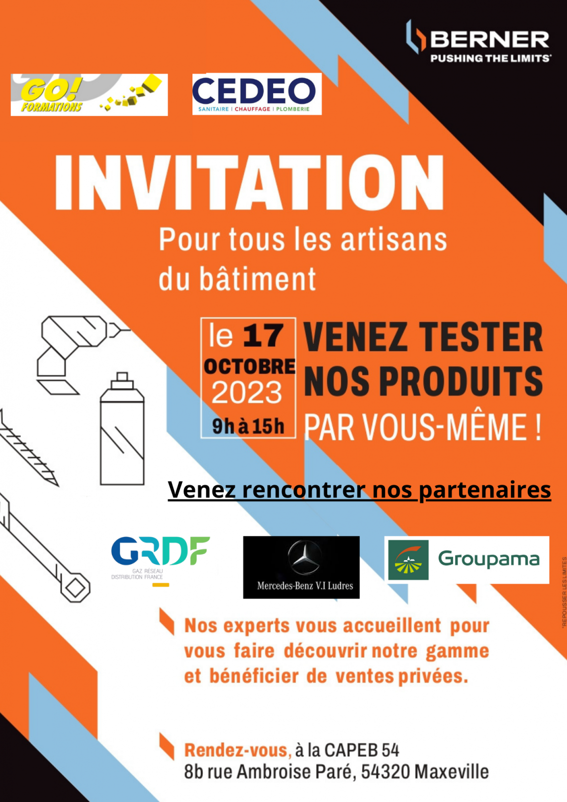 Nous vous donnons rendez-vous Mardi 17 Octobre 2023 de 9h00 à 15h00 dans nos locaux à Maxéville pour une Journée Portes-Ouvertes organisée par Berner !