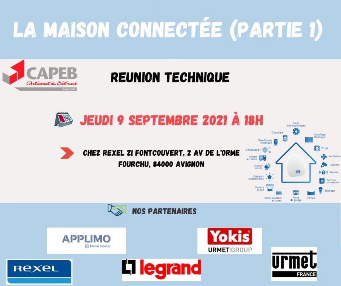 La section professionnelle Equipements Electriques et Electrodomotique de la CAPEB Vaucluse a le plaisir de vous inviter à sa prochaine réunion technique sur :