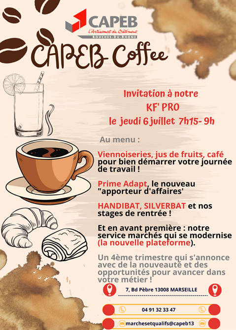 Nous sommes ravis de vous inviter le jeudi 6 juillet à partir de 7h 15 dans nos locaux ou en visio, afin de vous présenter la"PRIME ADAPT" comme une nouvelle opportunité qui peut vous intéresser en tant "qu'apporteur d'affaires".