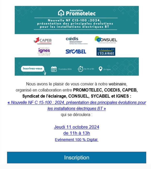 La CAPEB Nationale et ses partenaires vous propose en webianire - Nouvelle NFC 15-100: 2024, présentation des principales évolutions pour les installations électriques BT