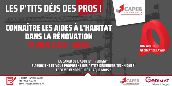 Chaque mois, la CAPEB et le CGB GEDIMAT s'associent afin de proposer des thématiques techniques ou juridiques dans l'intérêt des entreprises du BTP.