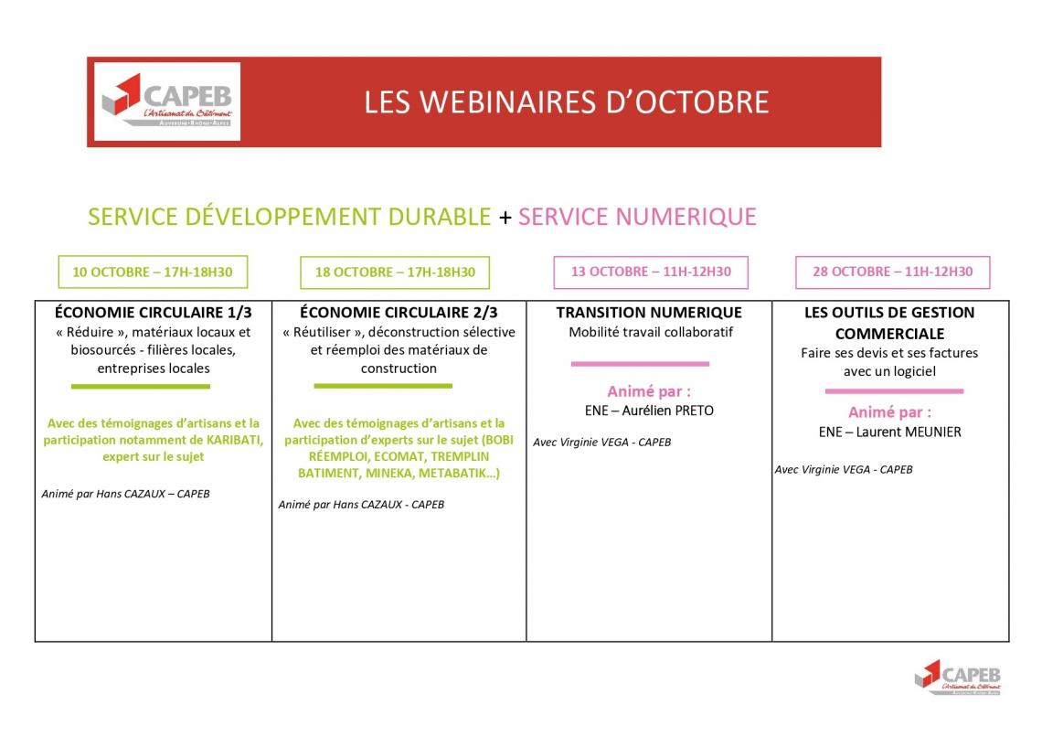 La CAPEB Auvergne-Rhône-Alpes poursuit sa série de Webinaires sur le thème du numérique en partenariat avec l'ENE et lance son cycle en 3 volets sur l'économie circulaire (dernier volet le 10 novembre).