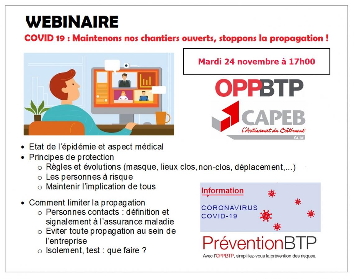 L'OPPBTP et la CAPEB de l'Aube vous proposent de participer à un webinaire gratuit de 45 minutes, animé par Clémence HUBERT, conseillère régionale. .