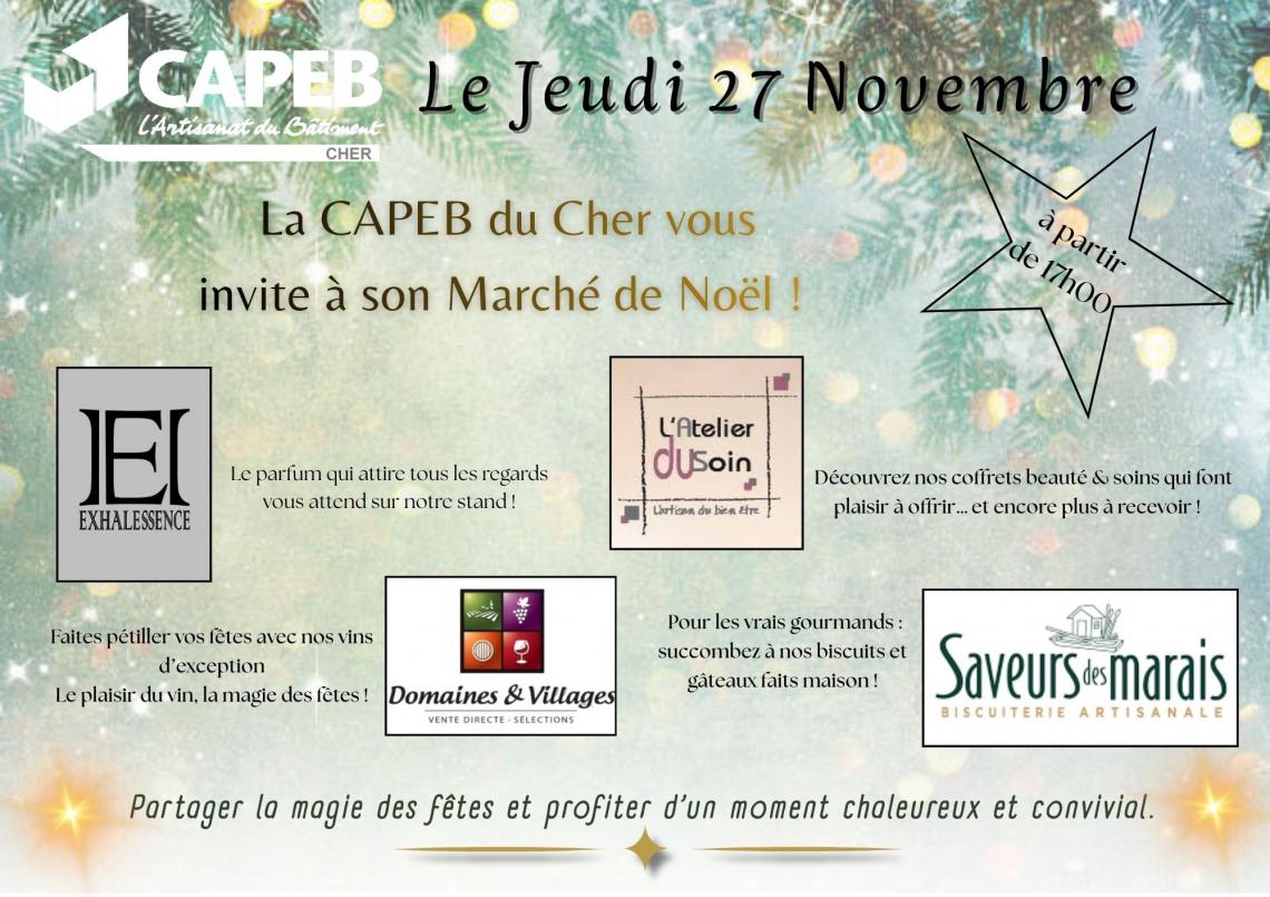 La CAPEB du Cher vous donne rendez-vous pour son Marché de Noël, un moment festif et convivial placé sous le signe de la magie des fêtes !