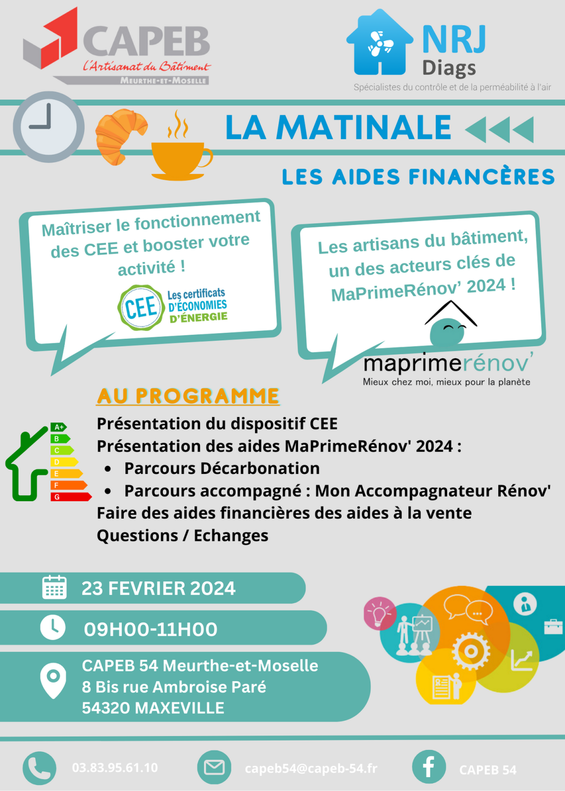 Ne manquez pas notre matinale sur les aides financières le 23 Février 2024 de 9h00 à 11h00