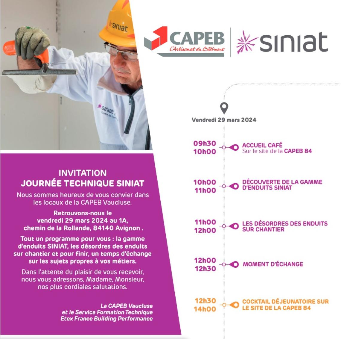 Les Métiers du Pâtre et de l'isolation de la CAPEB Vaucluse en partenariat avec SINIAT vous invite à une matinée technique sur les enduits.