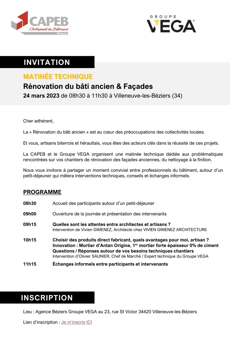 Matinée technique : Rénovation du bâti ancien & Façades Matinée d'échange entre architecte, prescripteurs produits et artisans autour du bâti ancien Je m'inscris ICI