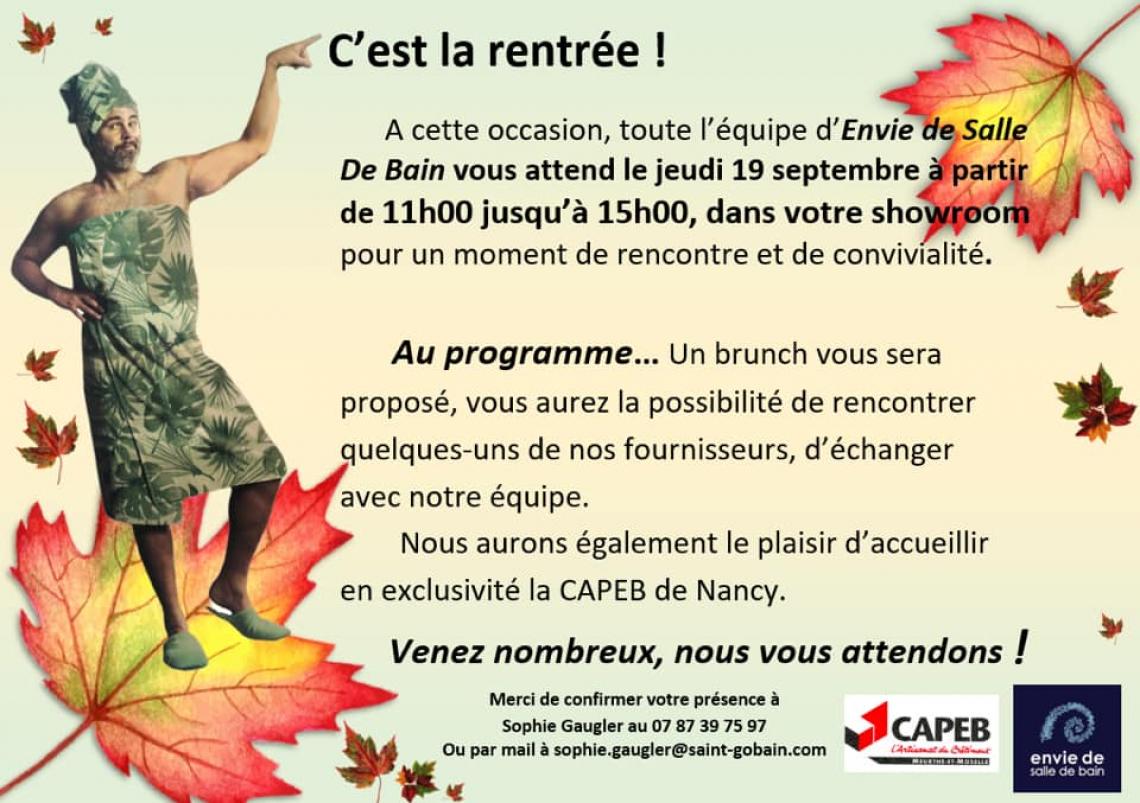 À vos agendas : à ne pas manquer la date du 19 septembre prochain chez Envie de Salle de Bain, 39 bd Marcel Brot à Nancy