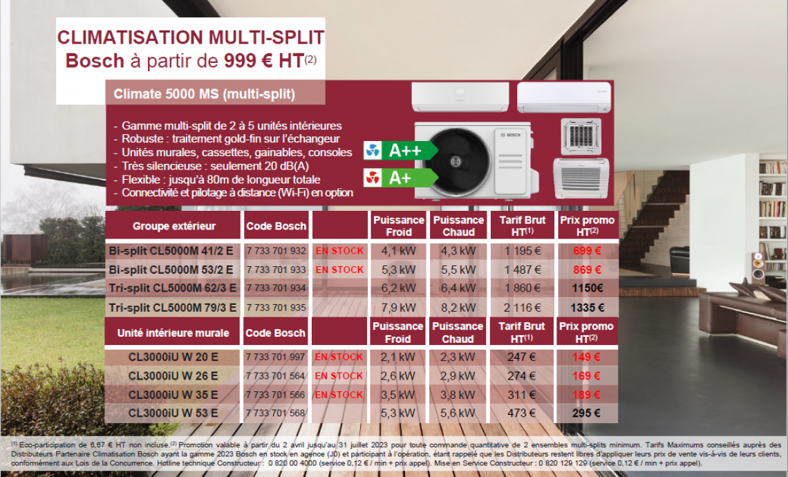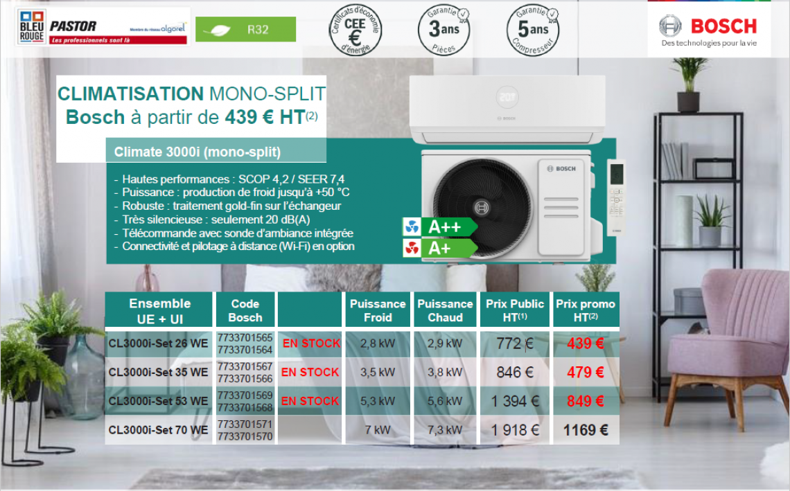 Promotion sur les climatisations Bosch chez votre fournisseur Pastor - Toulon.