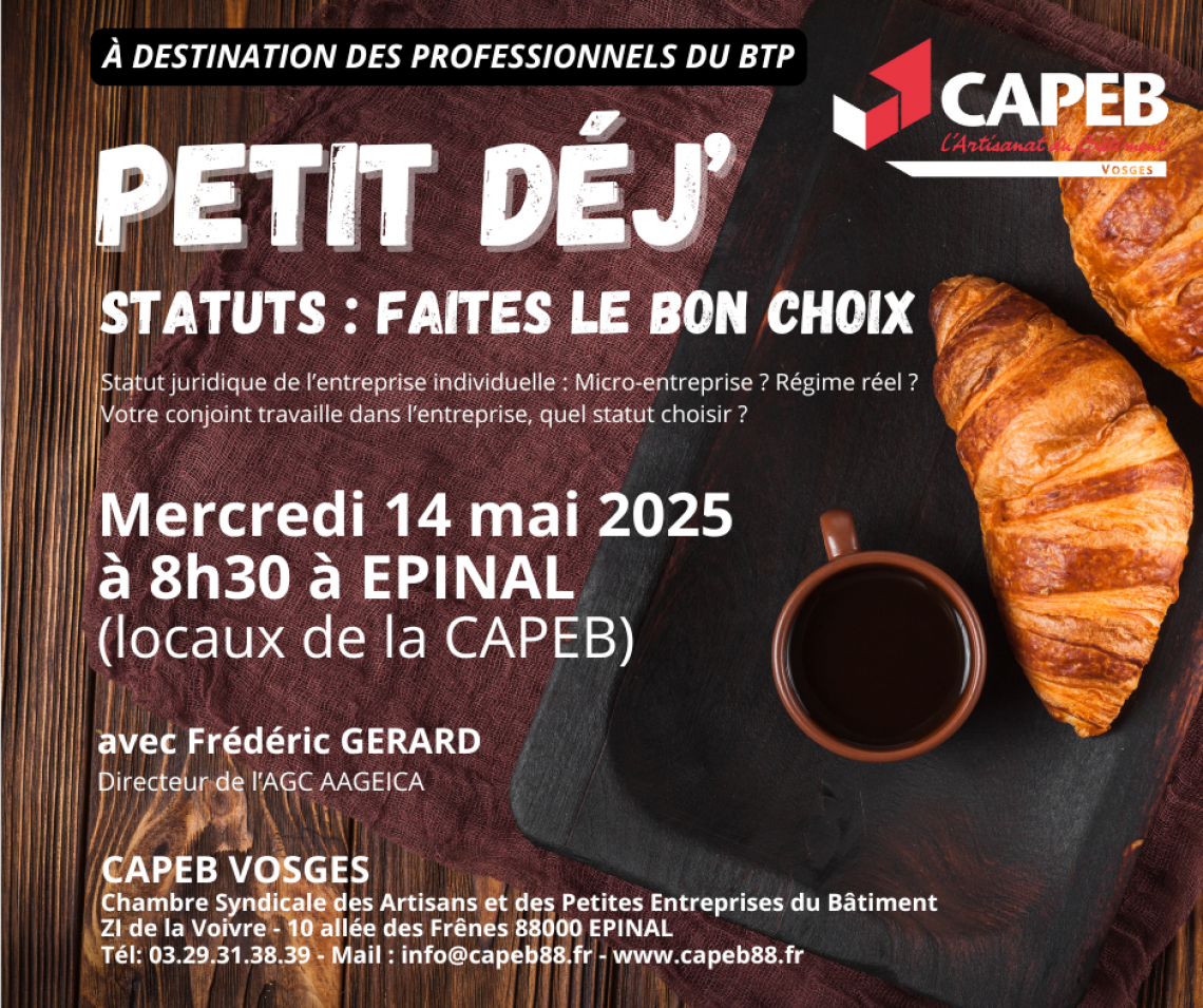 Mercredi 14 mai 2025 à 8h30 à Epinal (locaux de la CAPEB)