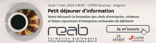 En avril 2019, la CAPEB Vaucluse accueillera une nouvelle promotion de la formation REAB de l’AFABAT.