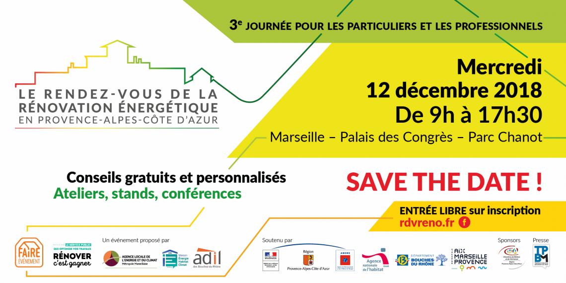 Forte de son succès en 2016 à Marseille et en 2017 à Aix-en-Provence, une nouvelle édition du « Rendez-vous de la rénovation énergétique en Provence-Alpes-Côte d’Azur » proposée par la Maison Energie Habitat Climat du Pays d'Aix et l'ALEC Métropole Marseillaise revient en 2018.
