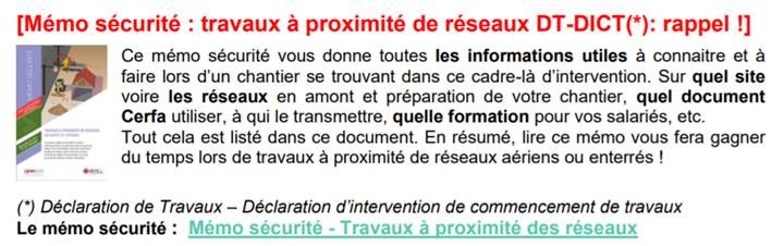 En complément, voici un focus sur le Mémo sécurité -travaux à proximité des réseaux