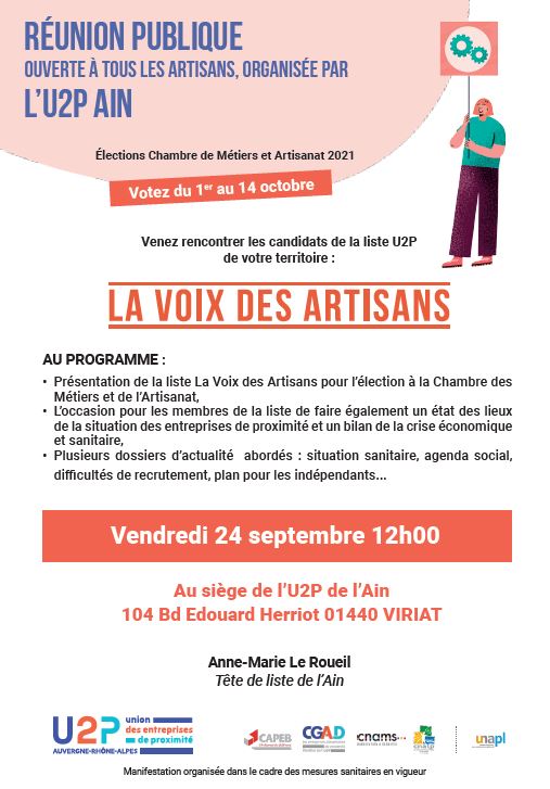 Dans le cadre des élections Chambre de Métiers, l'équipe de la voix des Artisans de l'Ain vous invite