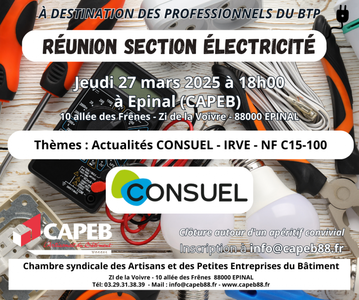 Jeudi 27 mars 2025 à 18h00 à Epinal (Locaux de la CAPEB)
