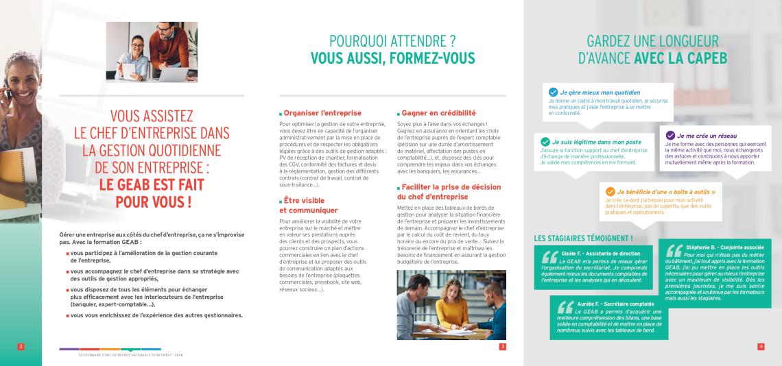 Découvrez la formation GEAB Gestionnaire d'une Entreprise Artisanale du Bâtiment de la CAPEB à travers les témoignages de stagiaires ayant suivi le GEAB : les certifiés reviennent sur leur parcours et ce qu’apportent les deux certifications dans leur quotidien de gestionnaire et de chef d’entreprise.