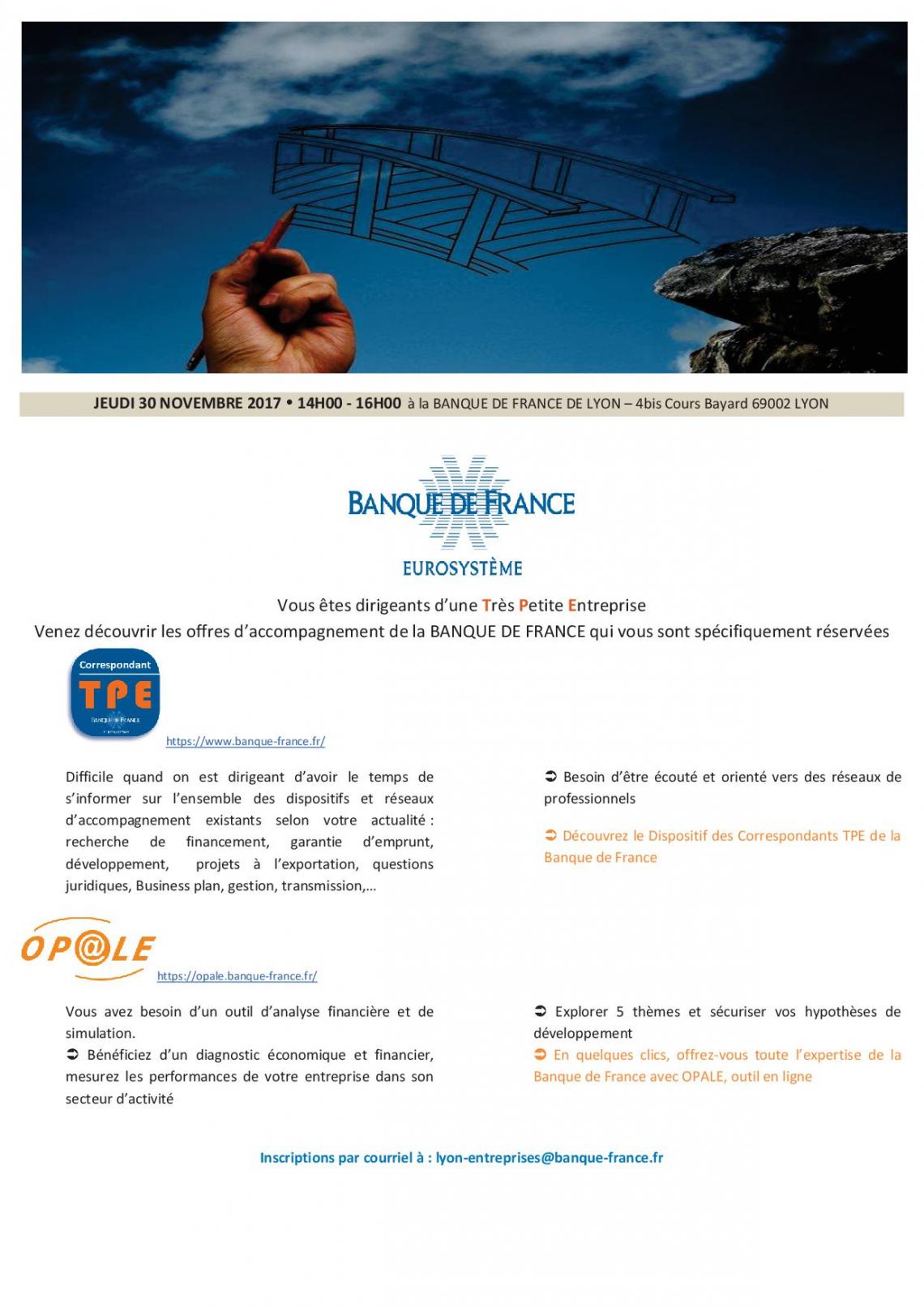 Rejoignez les locaux de la banque de France de 14H00 à 16H00 - 4 bis Cours Bayard 69002 LYON