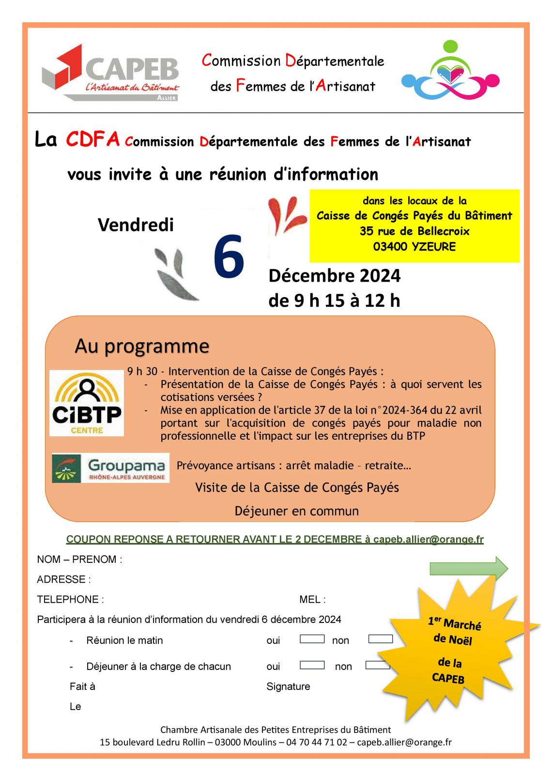 Le coupon réponse est à retourner à la CAPEB Allier avant le 2 décembre à capeb.allier@orange.fr