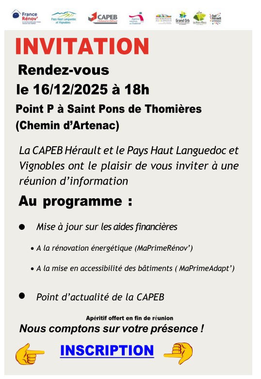 Réunion d'information sur les aides financières MAJ sur les aides financière à la rénovation (énergétique et mise en accessibilité) JE M'INSCRIS
