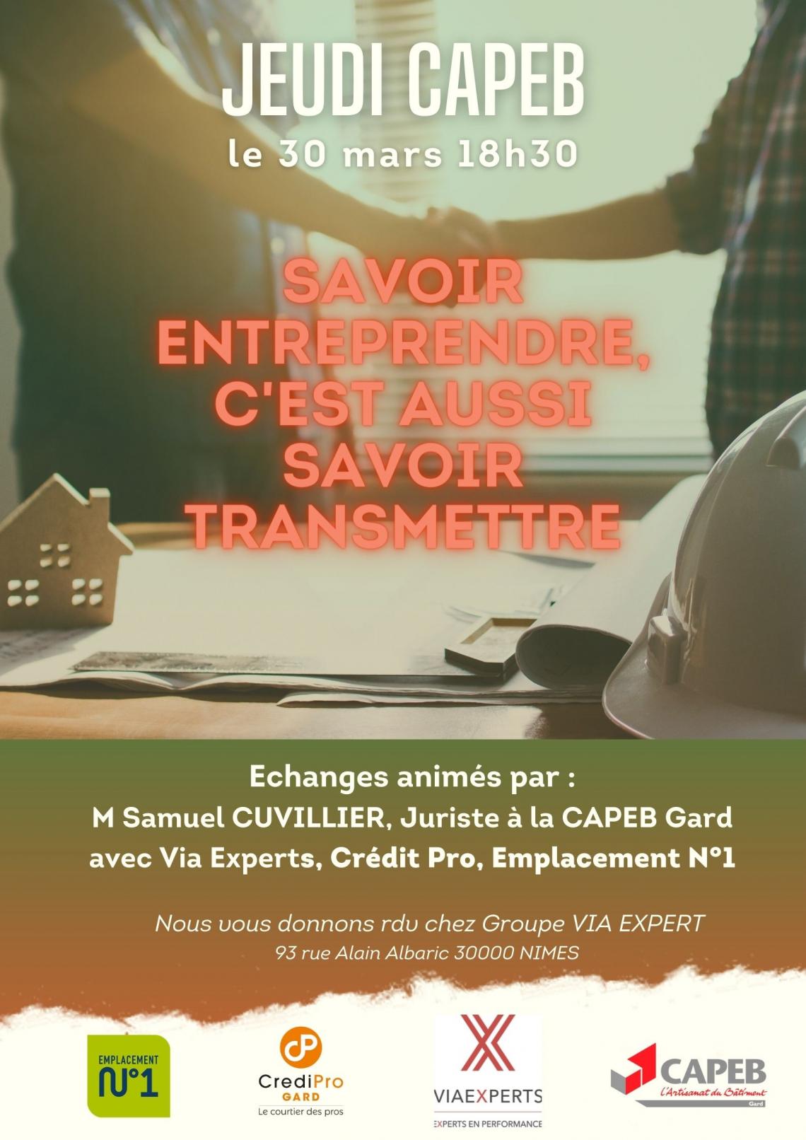 Nous vous donnons RDV le Jeudi 30 Mars à 18h30 au 93 rue Alain Albaric 30000 Nimes (VIA EXPERTS).