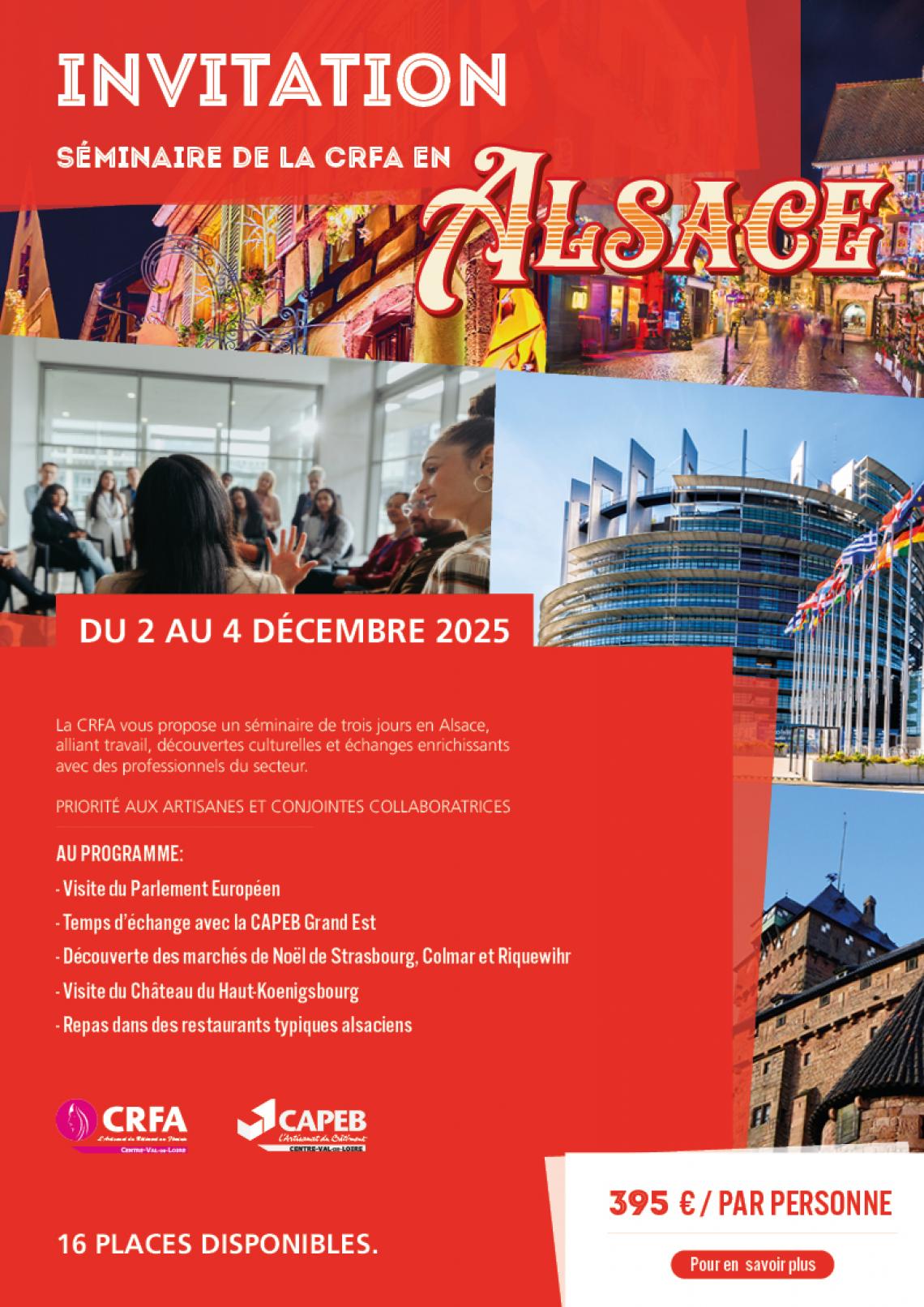Séminaire à Strasbourg Réservé aux adhérents des CAPEB situées en région Centre-Val de Loire. Programme ici. Inscription au séminaire ici.