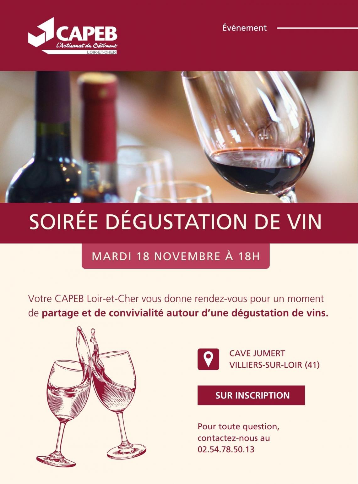 La CAPEB Loir-et-Cher vous invite à une soirée dégustation de vin à la Cave Jumbert, à Villiers-sur-Loir.