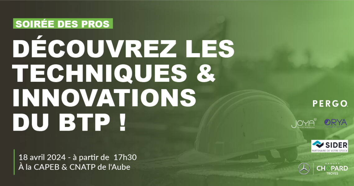 Cette soirée est l'occasion idéale de rester à la pointe de l'innovation dans le domaine du BTP, d'échanger avec des experts et de développer votre réseau professionnel. Réservez dès maintenant votre place iciou en nous contactant à l'adresse accueil@capeb10.fr ou au numéro 03.25.76.27.80.