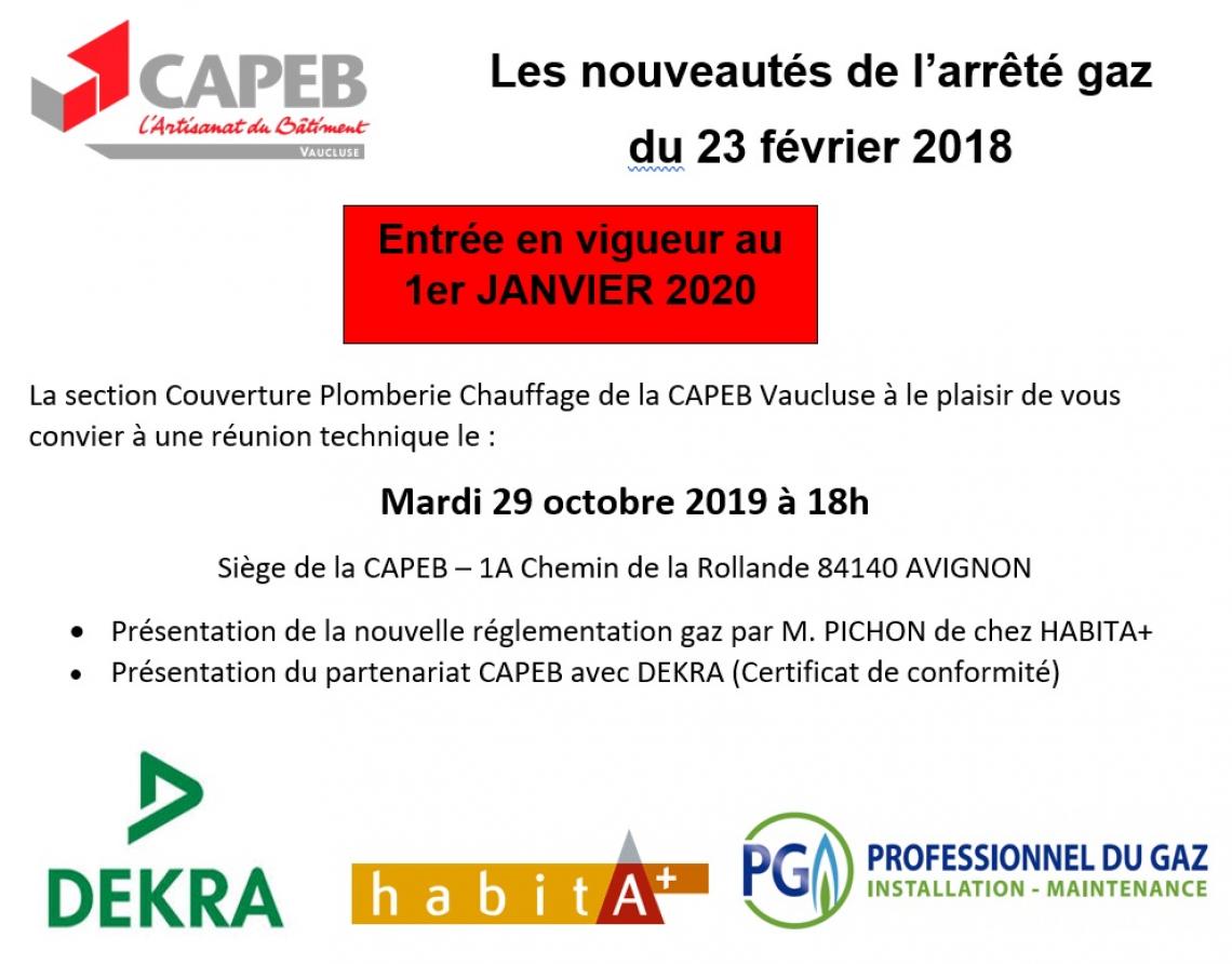 Soirée d'info Plombiers Chauffagistes : les nouveautés de l’arrêté gaz du 23 février 2018