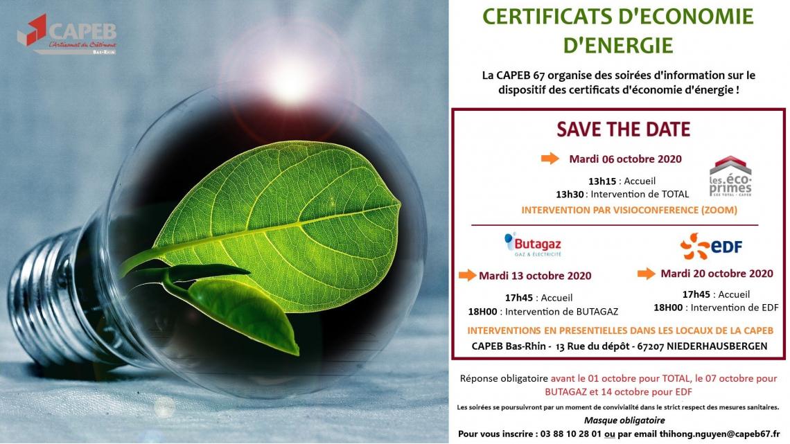 La CAPEB 67 organise les mardis 06, 13 et 20 octobre 2020 une soirée d'information sur le dispositif des certificats d'économie d'énergie.