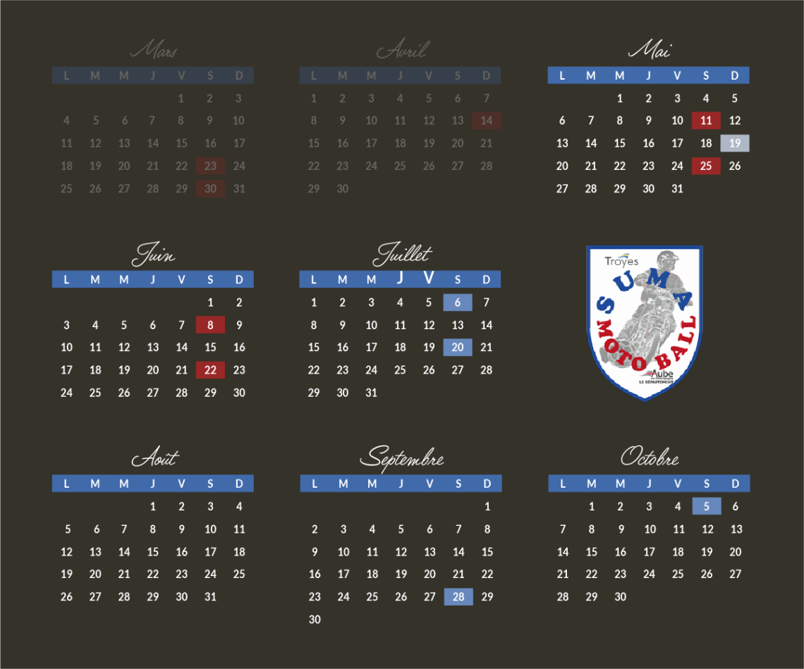 Ne manquez pas nos matchs à domicile et plongez-vous dans l'action palpitante du Motoball ! Notre premier match est prévu ce samedi 23 mars, et nous sommes impatients de vous offrir un spectacle sensationnel.