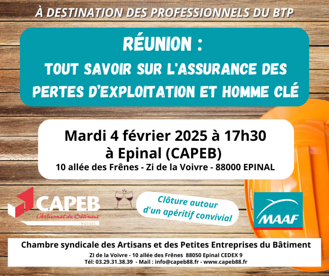 Mardi 4 février 2025 à 17h30 à Epinal (locaux CAPEB)