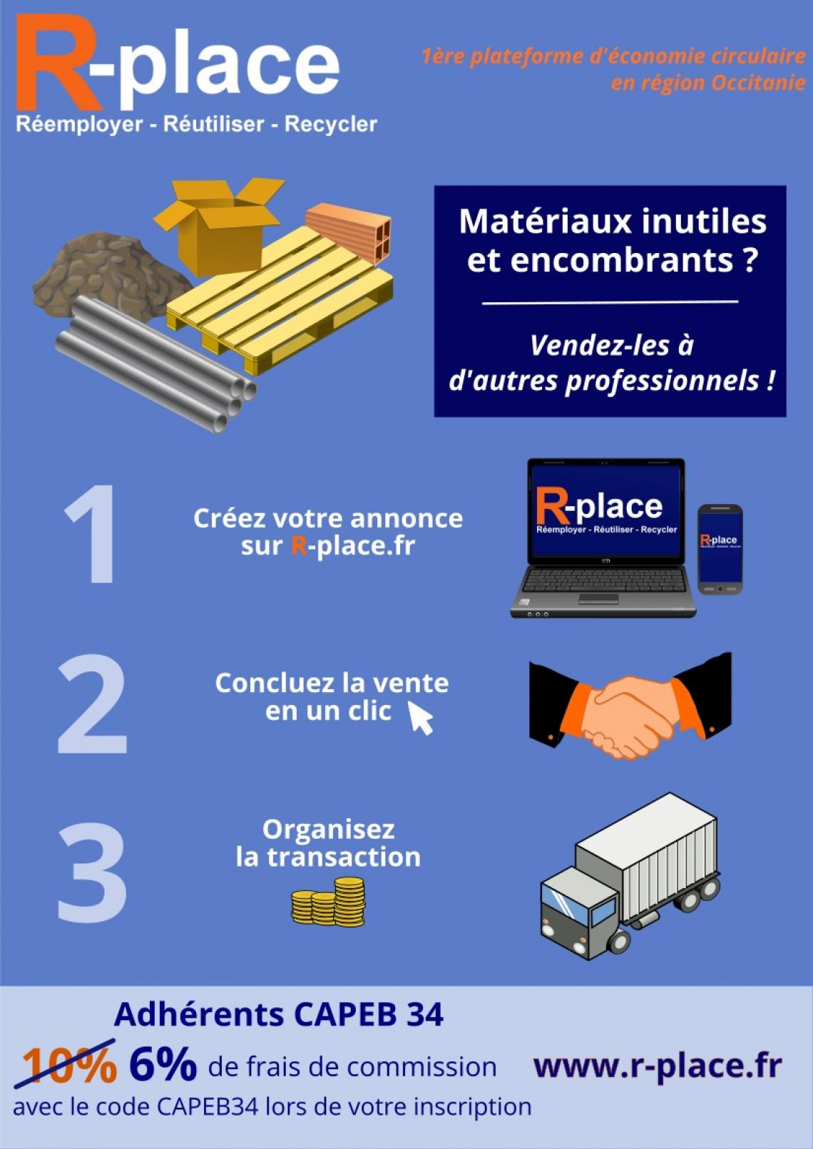 Vous aussi pensez à valoriser vos surplus de matériaux ou vos déchets de chantier, grâce à notre partenaire R-PLACE et connectez-vous sur www.r-place.fr
