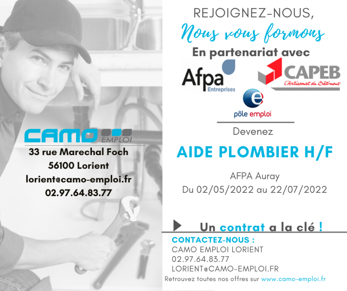 En collaboration avec l’AFPA de BRECH et CAMO EMPLOI, la CAPEB du Morbihan forme actuellement 6 personnes à l’AFPA pour leur apporter les compétences de base sur le poste d’aide-plombier. Cette formation de 400 heures a débuté le 02/05/2022 : ces apprenants seront sur le marché de l’emploi dès le 22/07/2022.