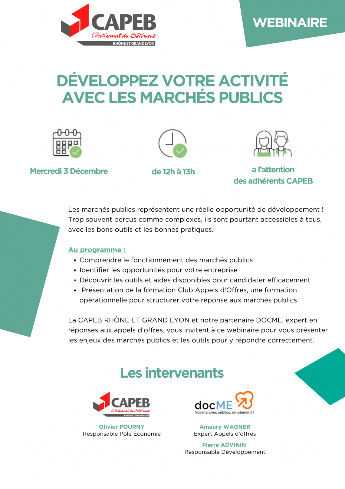 Webinaire CAPEB : "Développez votre activité grâce aux marchés publics" - Mercredi 3 Décembre 2025 de 12h à 13h