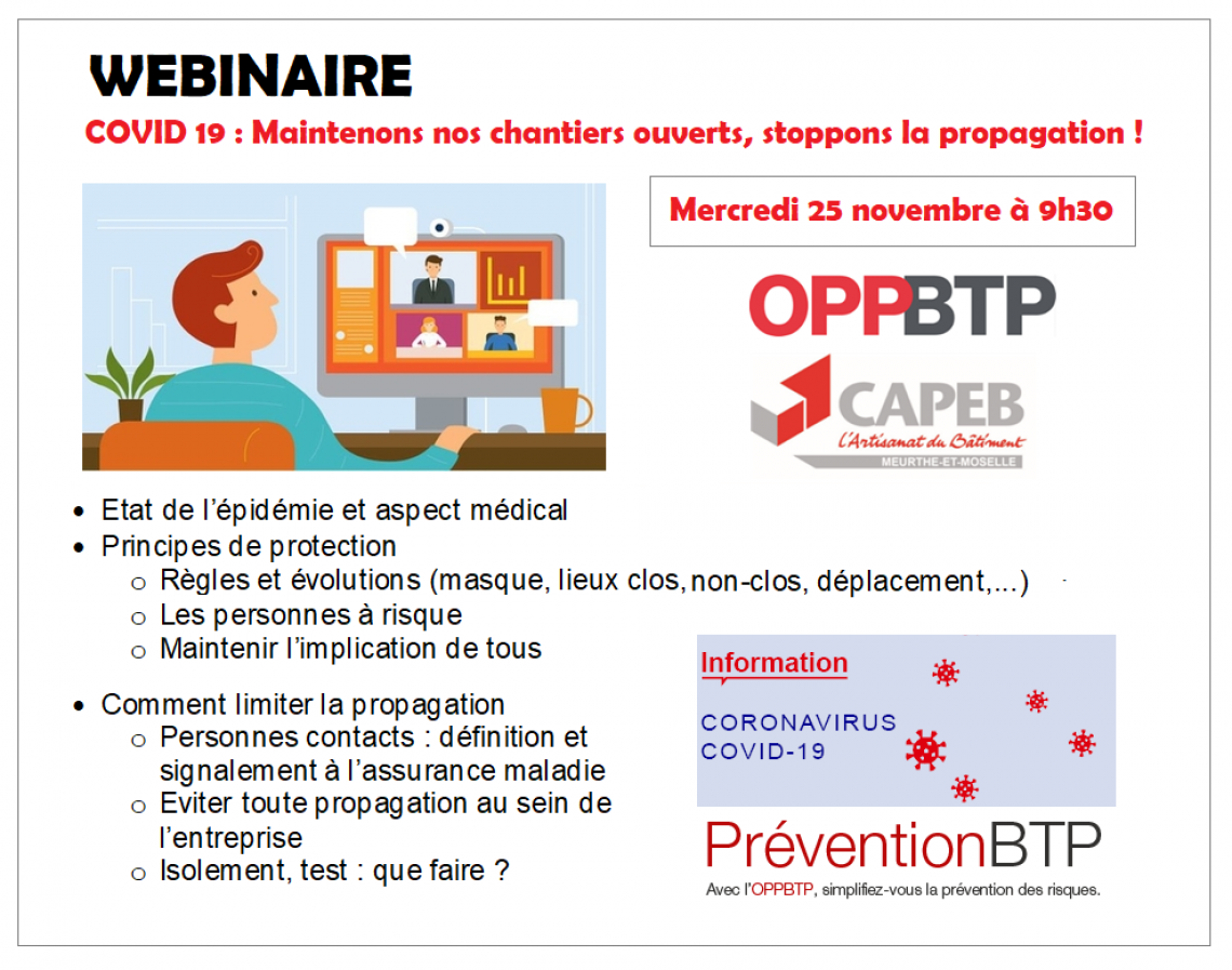 Webinaire COVID 19 à 9h30 Maintenons nos chantiers ouverts, stoppons la propagation Lien de connexion au webinaire : https://cutt.ly/ohuNhqQ