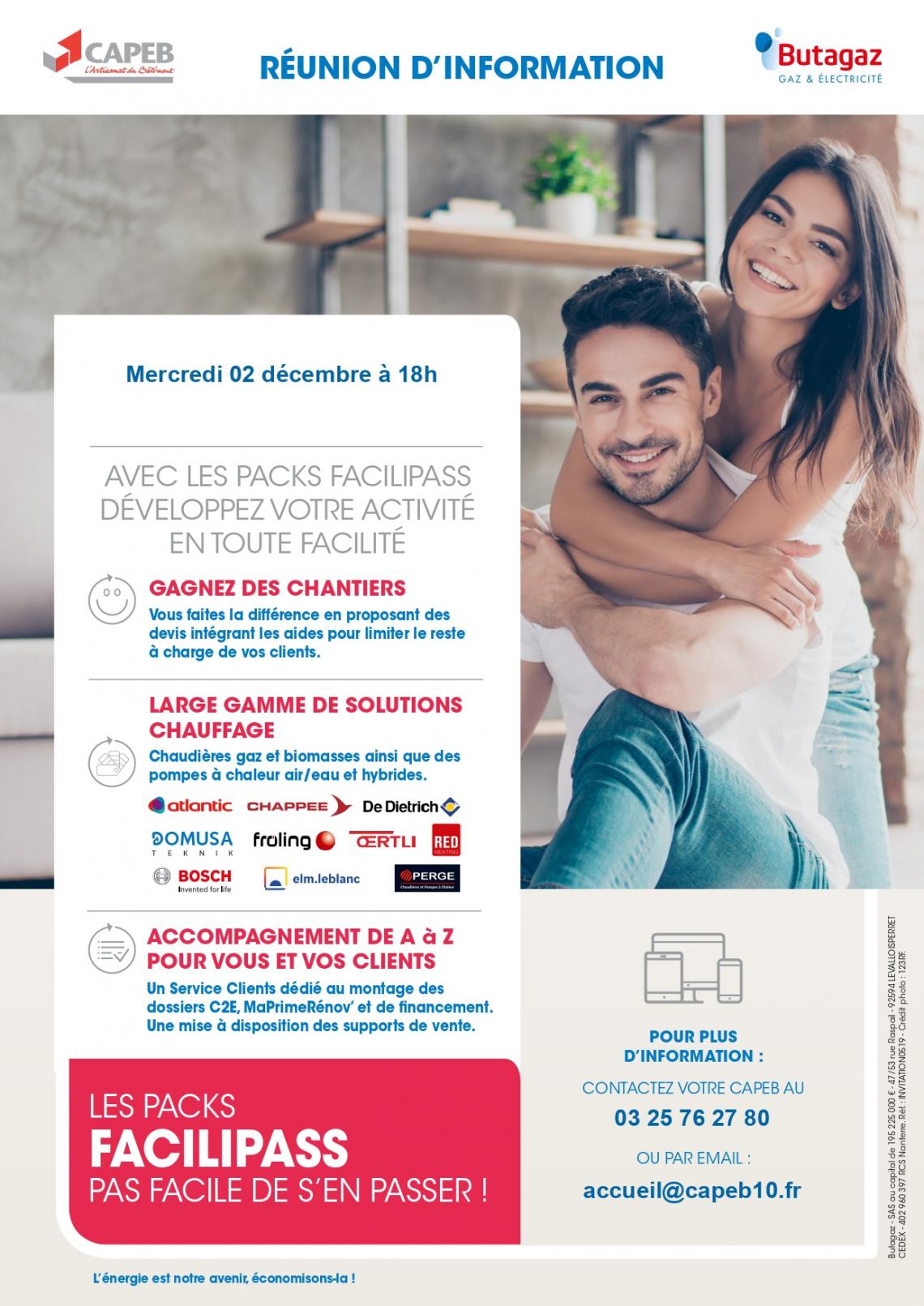 Afin de pouvoir informer les entreprises artisanales du bâtiment sur les dernières évolutions de l’offre Facilipass, la CAPEB et son partenaire BUTAGAZ proposent aux CAPEB départementales qui le souhaitent d’inviter leurs adhérents à un webinaire de prése