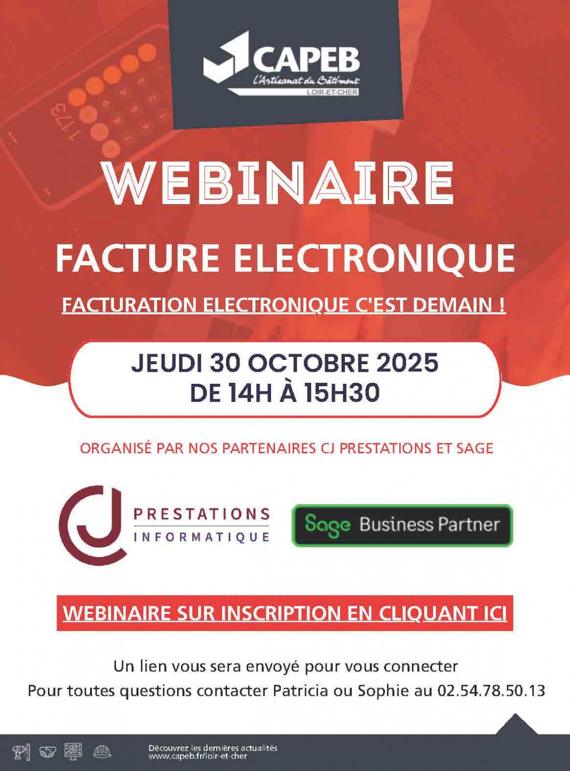 WEBINAIRE - FACTURE ELECTRONIQUE FACTURATION ELECTRONIQUE C'EST DEMAIN ! Inscription au webinaire obligatoire, cliquez ici.