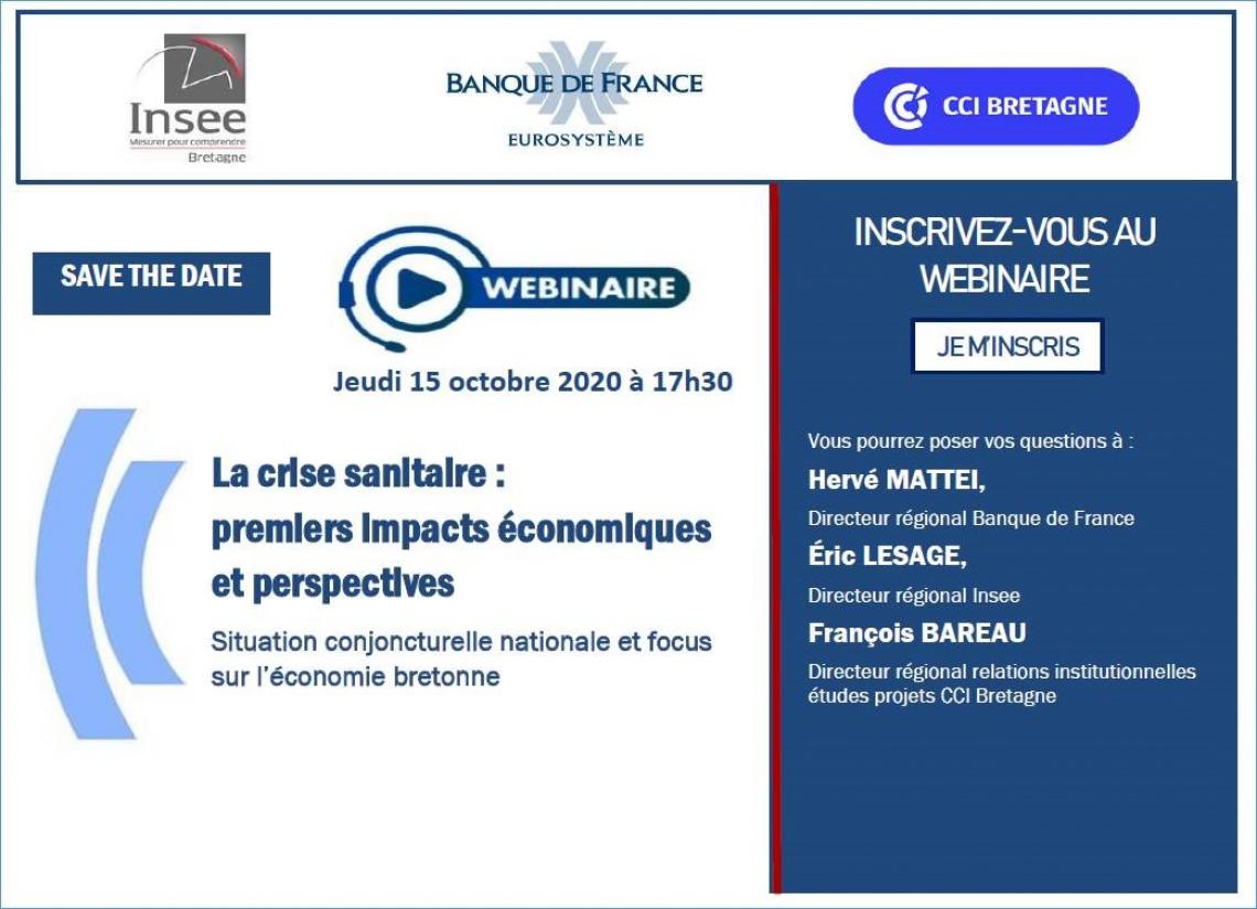Webinaire en présence de Hervé MATTEI - Directeur Régional Banque de France, Eric LESAGE - Directeur Régional INSEE et François BAREAU - Directeur régional relations institutionnelles études et projets CCI Bretagne.