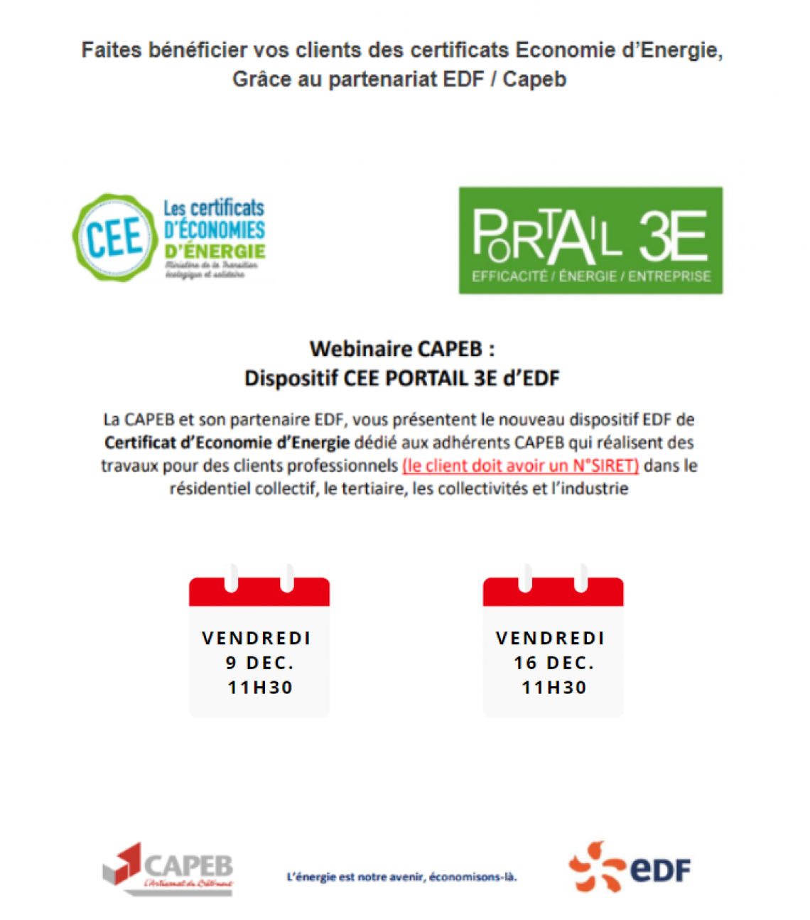 Faites bénéficier vos clients des certificats Economie d’Energie, Grâce au partenariat EDF / Capeb