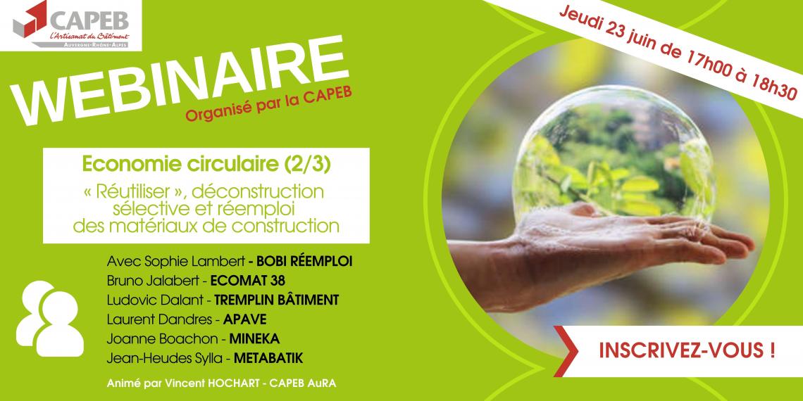 En juin 2022, la CAPEB Auvergne-Rhône-Alpes organise un cycle de webinaires sur l’économie circulaire.